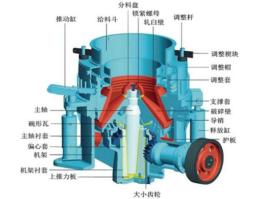 在圓錐破碎機的工作過程中,電動機通過傳動裝置帶動偏心套旋轉,動錐在偏心軸套的迫動下做旋轉擺動,動錐靠近靜錐的區段即成為破碎腔,物料受到動錐和靜錐的多次擠壓和撞擊而破碎。動錐離開該區段時,該處已破碎至要求粒度的物料在自身重力作用下下落,從錐底排出。