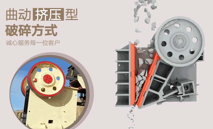 結構組成優勢:由機架、偏心軸、大皮帶輪、飛輪、動鄂、側護板、肘板、肘板后座、調隙螺桿、復位彈簧、固定鄂板與活動鄂板等組成。